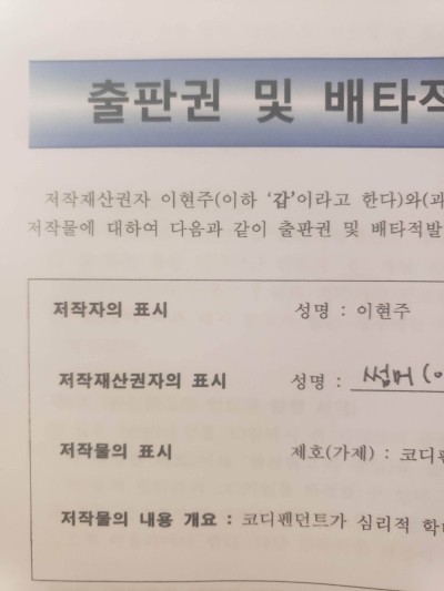 그래서 함께 책의 방향성을 이야기하고 오늘 계약을 했습니다!