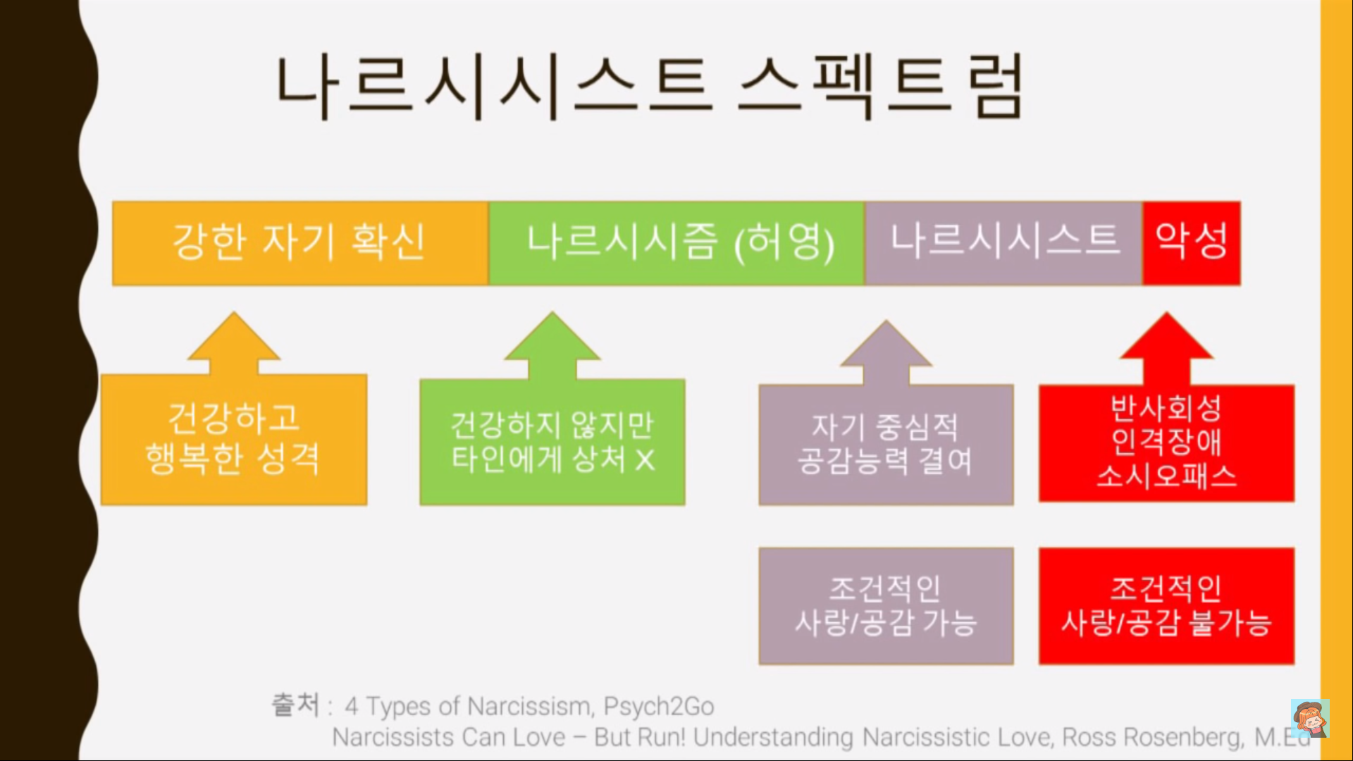 자세한 나르시시스트 스펙트럼 내용은 유튜브 영상을 봐주세요 ^^