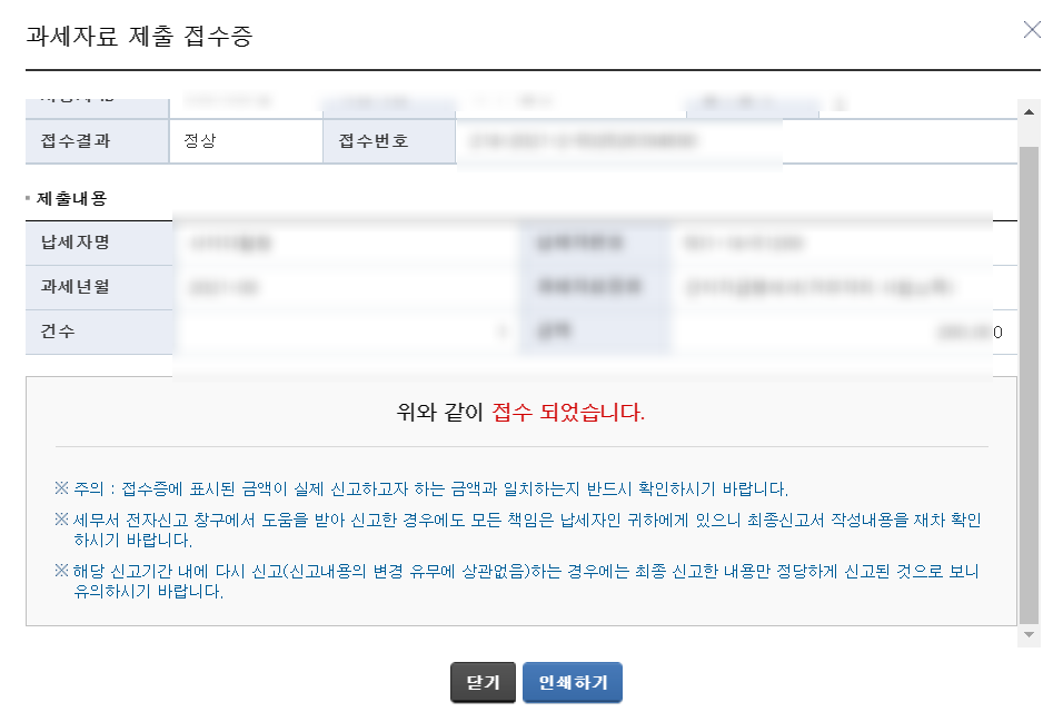 제출 접수증을 보고 확인합니다.