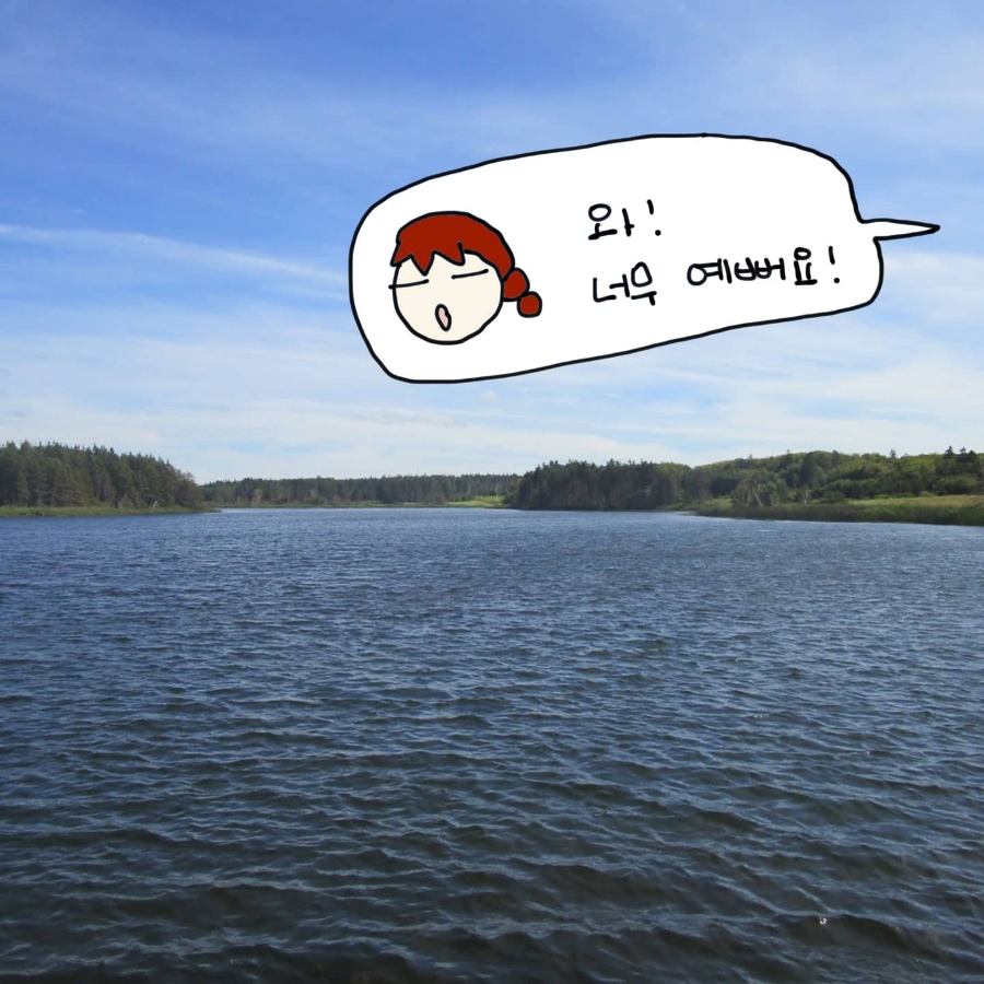 '반짝이는 호수'라는 표현은 그저 '반짝반짝 작은별'의 동요 구절처럼 타성에 젖은 표현이라고 생각했다. 호수니까 반짝인다고 붙여놨겠지 하는 생각이었다. 하지만 막상 프린스 에드워드 섬의 크고 작은 연못들을 보니 눈이 부시게 빛나고 있었다. 분명 연못(Pond)라고 지명에 적혀있지만, 한국에서 보던 연못과는 규모가 달랐다. 하지만 호수(Lake)는 아니었다. 그런 연못들이 프린스 에드워드 섬에는 곳곳에 있었다.