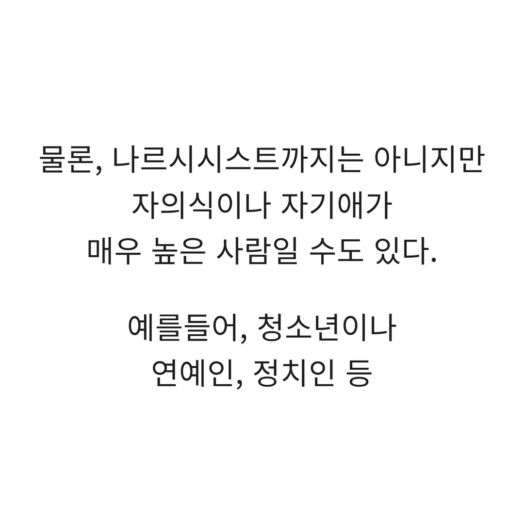 물론, 자의식이나 #자기애 가 조금 강한 사람들도 비슷한 모습을 보인답니다.