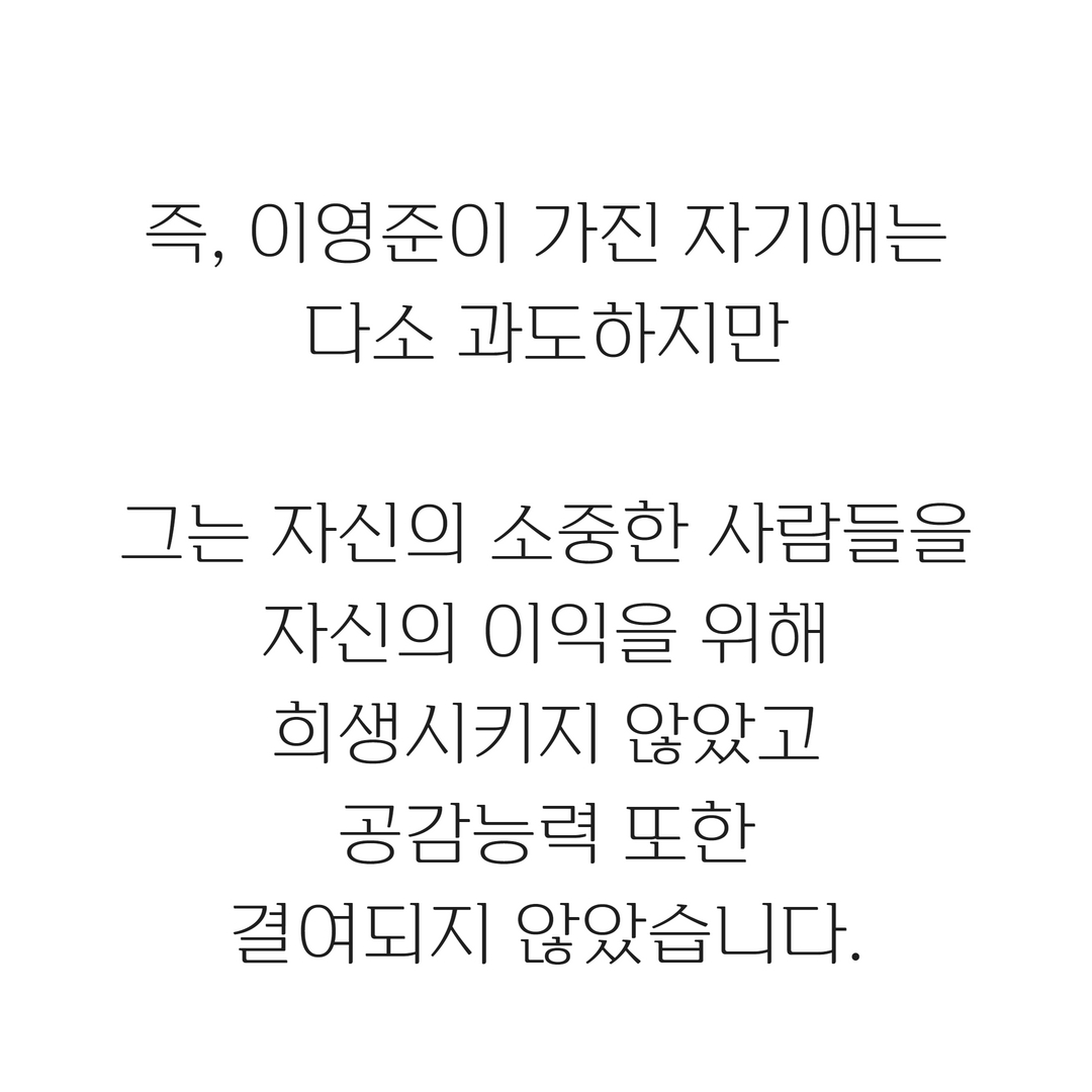 다른 사람들의 욕구나 필요, 이익을 생각해줄 수 없어요.