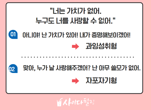 구독자분들 중, 자기방임형인 분들이 많이 계세요. 차라리 과잉성취형이 낫다고 이야기하는 분들도 계시는데요.